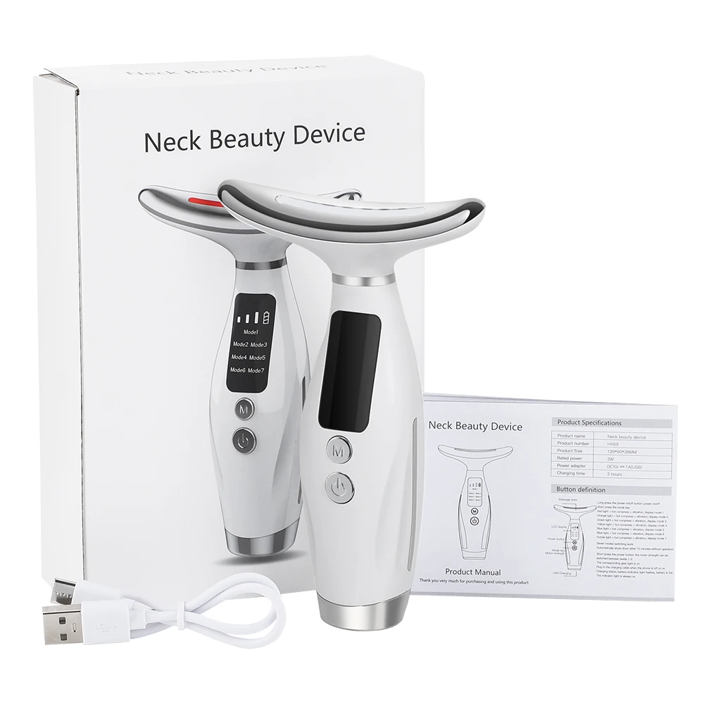 Colour Light Face and Neck Beauty Instrument 7 Modes and 7 Speeds Adjustment with Curved Hand Grip Neck Beauty Instrument